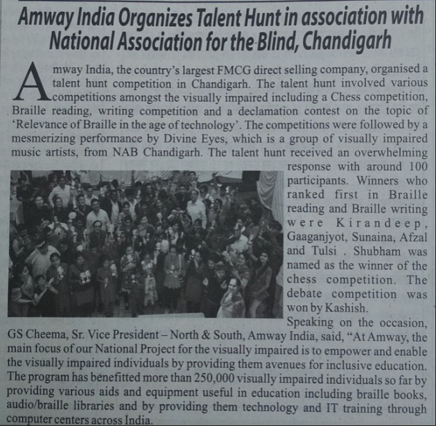 Press article covering NAB’s Talent Hunt Contest held on 28 March 2019, highlighting inspiring performances by visually challenged individuals