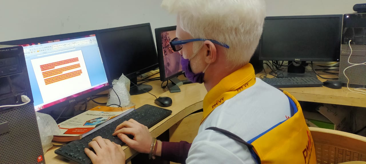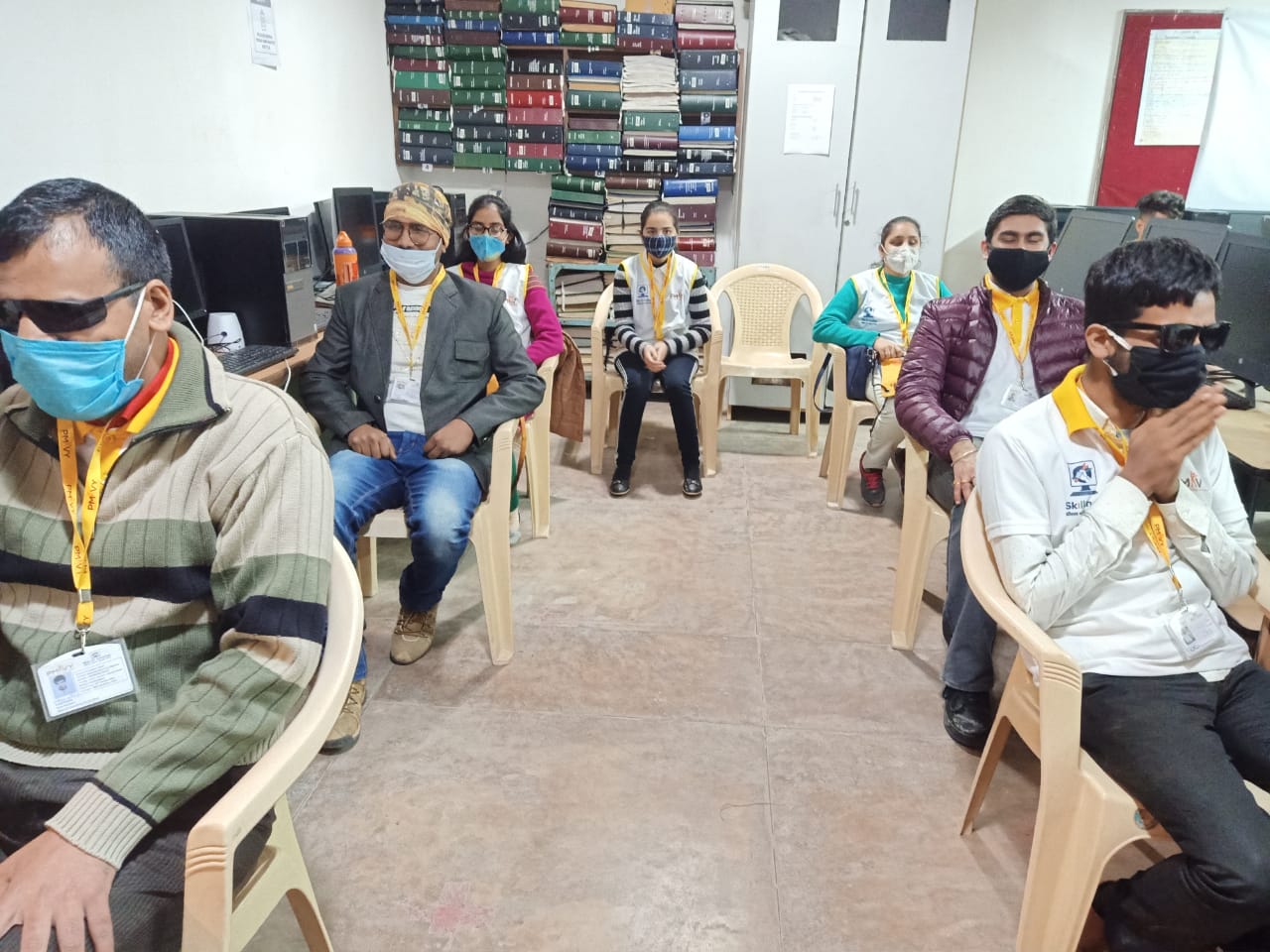 Visually challenged students of NAB welcoming the Hon’ble Governor of Punjab by presenting him the plant